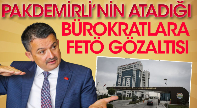 Tarım ve Orman Bakanlığı görevinden ayrılan Bekir Pakdemirli kapıdan çıktı, atadığı bürokratlara fetö gözaltısı kararı çıktı.Tarım ve Orman Bakanı Bekir Pakdemirli'nin dün görevden alınmasının yankıları sürerken, Ankara Başsavcılığı’nın, FETÖ’nün güncel kamu yapılanmasına yönelik soruşturma kapsamında dün sabah Tarım Bakanlığında 7’si aktif görevde, 9 bürokrat hakkında gözaltı kararı verdiği öğrenildi.