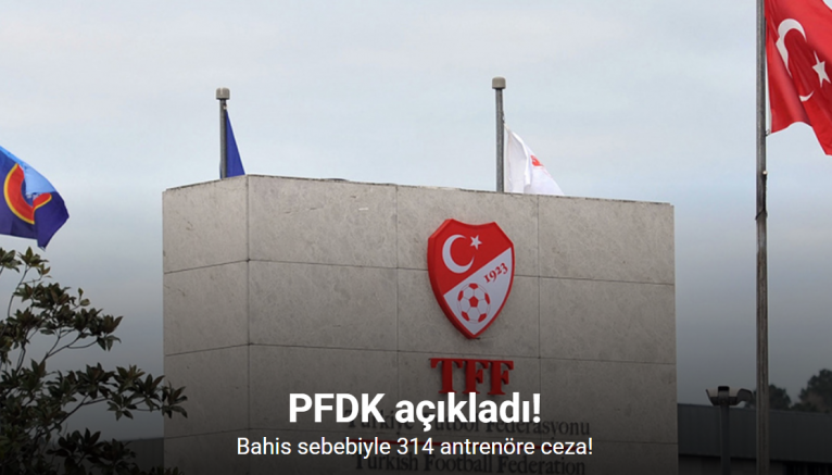 Türkiye Futbol Federasyonu Profesyonel Futbol Disiplin Kurulu, bugün yaptığı toplantıda bahis eylemi nedeniyle sevki yapılan antrenörlere verilen cezaları açıkladı. Buna göre, son 5 yılda Süper Lig harici profesyonel liglerde görev yapmış olan 314 antrenör 45 gün ila 12 ay arasında hak mahrumiyeti cezası aldı. Ayrıca 11 antrenör hakkında ceza tayinine yer olmadığına karar verilirken, 1 antrenör hakkında ise incelemenin ve idari tedbirin devam etmesi kararlaştırıldı.