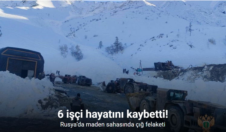 Rusya’ya bağlı Buryutya Cumhuriyeti’nin Muysky Bölgesi’nde bulunan bir maden sahasında yapılan yol çalışması sırasında çığ düştü. Sahada çalışan 9 çığ altında kalırken, 3 işçi kendi imkanlarıyla kurtuldu. Rusya Acil Durumlar Bakanlığı’na bağlı yaklaşık 60 personel maden sahasına ulaşarak çığ altında kalan 6 işçiyi arama çalışmalarına başladı. Gün içinde devam eden arama kurtarma çalışmaları sırasında yeni bir çığ felaketi daha yaşandığı ancak kurtarma ekiplerinin bu felaketten kaçarak kurtulduğu açıklandı.