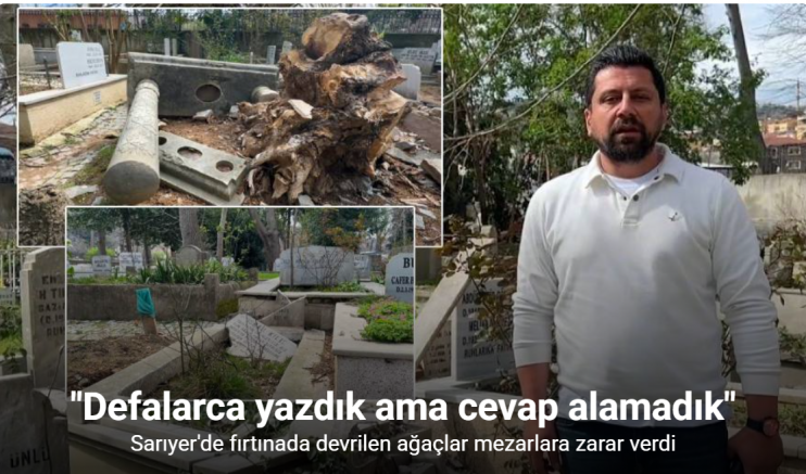 İstanbul genelinde geçtiğimiz günlerde etkili olan fırtına sonucunda Sarıyer Merkez Mahallesi’nde bulunan tarihi mezarlıkta ağaçlar devrildi. Devrilen ağaçlar mezarlara zarar verirken, Ramazan Bayramı’nda yakınlarının mezarlarına ziyarete gelen vatandaşlar kaybettikleri yakınlarının mezarlarının zarar gördüğünü iddia etti. Yakınlarının mezarlarının kırık dökük olduğunu gören vatandaşlar, yetkililere bilgi verdi. Ancak hala bir çözüm üretilmedi. Vatandaşlar çözüm için verdikleri dilekçelere de henüz bir dönüş yapılmadığını belirtti.