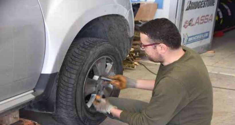 Küçük Sanayi Sitesi'nde oto lastik satımı ve değişimi yapan rot balans ustası Hasan Üçüncüoğlu, lastiklerin değişimi için kar yağışının beklenilmemesi gerektiğini belirterek, kış lastiklerinin yol güvenliği için hayati önem taşıdığına dikkat çekti.