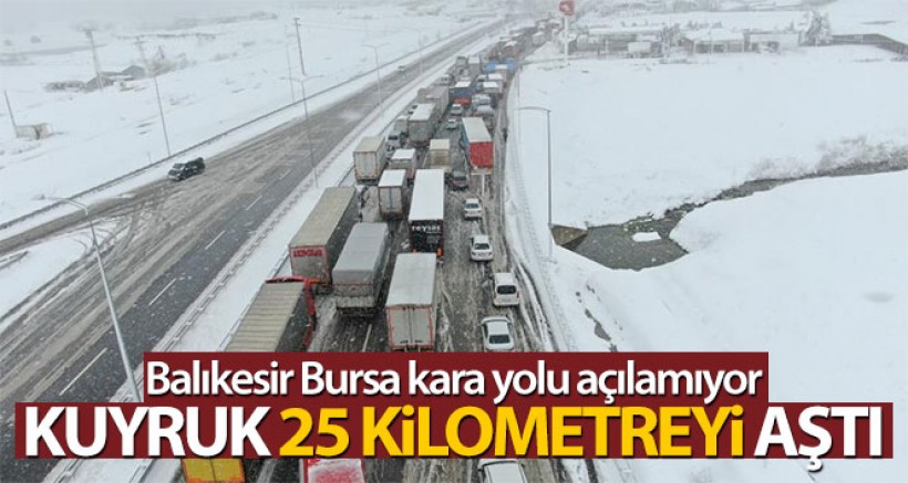 Dün akşamdan beri etkili olan kar yağışı, Balıkesir-Bursa yolunu araç trafiğinin kapanmasına sebep oldu. Tipi şeklinde yağan kar sebebiyle Balıkesir-Bursa yolu Susurluk ilçesi yakınlarında araçlar kayan ve yoldan çıkan araçlar sebebiyle trafik kapandı. Yüzlerce aracın mahsur kaldığı yoldaki, trafik yoğunluğu 25 kilometreye kadar ulaştı.