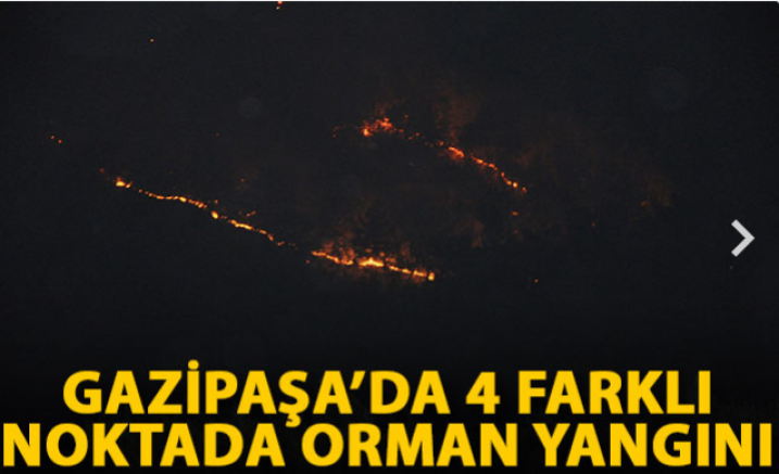 Gazipaşa’ya bağlı Küçüklü ve İnceğiz mahallelerindeki kızılçamla kaplı ormanlık alanda dün gece henüz bilinmeyen bir nedenle 4 farklı noktada yangın çıktı. Poyrazın da etkisiyle büyüyen alevler kontrolden çıkarak geniş bir alana dağıldı. Yerleşim yerlerini tehdit eden yangın nedeniyle bazı evlerdeki kişiler tahliye edildi. Gazipaşa Orman işletme Müdürlüğü, Antalya Büyükşehir Belediyesi Gazipaşa İtfaiye Birimi, sivil iş makineleri ve çok sayıda vatandaş yangını söndürmek için seferber oldu.