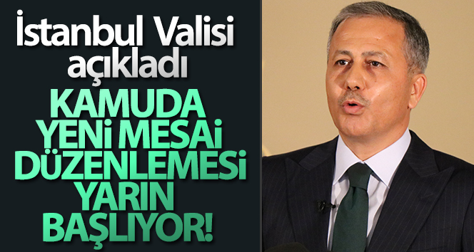 İstanbul Valisi Ali Yerlikaya, “İstanbul'da, kamu hizmetlerini aksatmamak kaydıyla; 2 Aralık Çarşamba gününden itibaren mesai saatleri çalar saat 10.00-12.30, 13.00-16.00 olarak uygulanacaktır. Uyarı işareti özel kanun, tüzük vb. düzenlemelerle mesai saati farklı olan kurum-kuruluşlara ait hükümler saklıdır” ifadeleri kullanıldı.