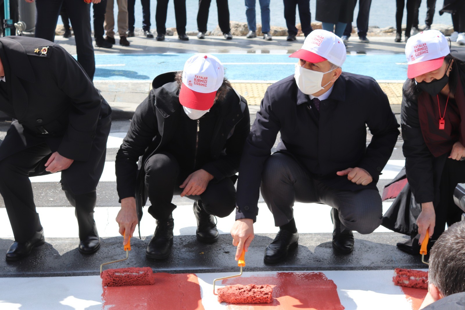 Fırçalarla yaya şeridine kırmızı çizgiyi çeken Vali Yerlikaya yürütülen çalışma sonrası yaptığı konuşmada, “Sayın İçişleri Bakanımız Süleyman Soylu, Allah ondan razı olsun. Trafik ile ilgili bütün zamanların en iyi hizmeti onun döneminde oldu. Bu sayede bütün şehirlerimizde aynı saatte kırmızı çizgilerimizi çektik. Burada sizlerin de şahitliğinde tüm istanbullulara sesleniyorum. Kaza istemiyoruz. Hepimizin tek isteği evimizden çıktığımız gibi huzurla geri dönebilmek. Bunun yolu da yaya geçidinde gördüğümüz yayalara tebessüm ederek yol vermek. O tebessümün anlamı senin sağlığına saygı gösteriyorum demek” diye konuştu.