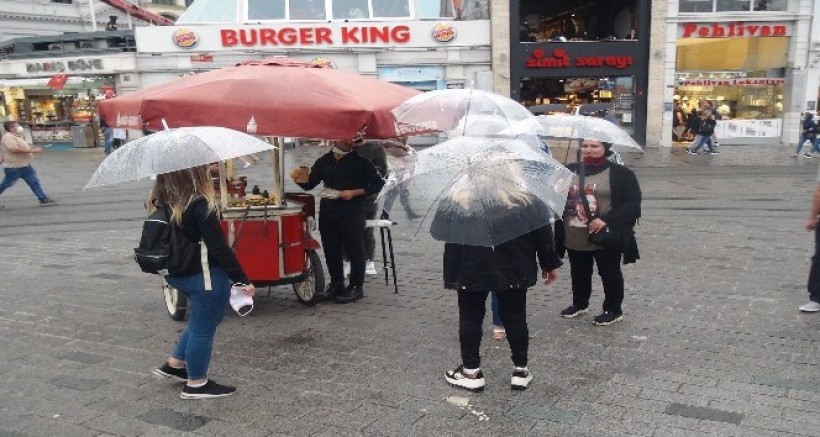 Öğlen saatlerinde yağan yağmura bazı vatandaşlar hazırlıksız yakalandı. Kimi vatandaşlar şemsiyeleriyle yürürken, bazıları da montlarıyla kendilerini yağmurdan korumaya çalıştı.