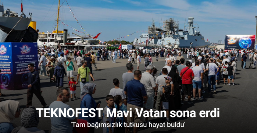 Dünyanın en büyük Havacılık, Uzay ve Teknoloji Festivali TEKNOFEST, deniz ve su altı teknolojilerine odaklanan "Mavi Vatan" teması ile teknoloji tutkunlarını bir araya getirdi. 28 Ağustos’ta İstanbul Tersanesi Komutanlığı’nda başlayan etkinlik bugün sona erdi. İnsansız Su Altı Sistemleri Yarışması, İnsansız Deniz Aracı Yarışması ve Su Altı Roket Yarışması olmak üzere üç farklı kategoride düzenlenen yarışmalara toplam 2 bin 698 takım başvuruda bulundu. 2 bin 698 takım arasından toplamda finale kalan 86 takım ve bin finalist dereceye girmek için kıyasıya yarıştı. Finalistler, Türkiye’nin farklı illerinden ve Özbekistan’dan katılım sağladı. TCG Anadolu’nun yanı sıra TCG İstanbul, TCG Burgazada, TCG Oruçreis, TCG Nusret, TCG Sakarya ve TCG Hızırreis gibi Türk donanmasının öne çıkan gemileri de etkinlik alanında büyük ilgi gördü.