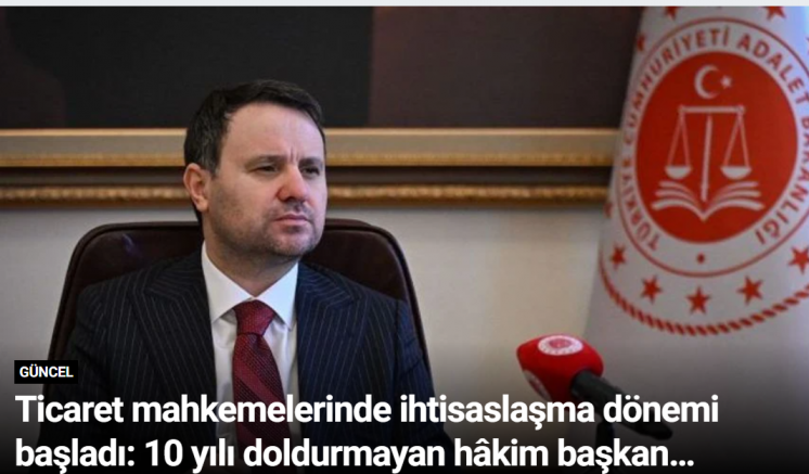 Bakan Gürlek, ticari davaların etkin ve hızlı çözümü amacıyla yapılan düzenlemeye dikkat çekerek, “10 yılı doldurmayan bir hâkim, ticaret mahkemesi başkanı olmayacak” dedi. Bu düzenleme ile ticaret mahkemelerinin tek çatı altında toplanması ve ihtisas mahkemesi mantığıyla yönetilmesi hedefleniyor.