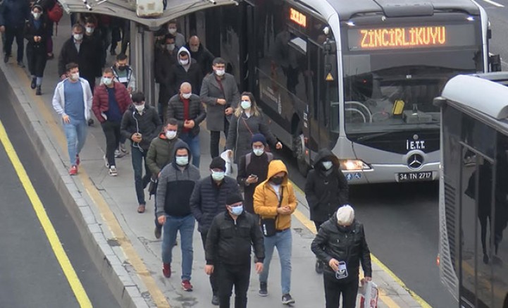 İstanbul'da sabah işe gidiş saatlerinde toplu taşıma araçları ve duraklarında yoğunluk yaşandı. Cevizlibağ'da vatandaşlar işyerlerine gitmek için toplu taşımayı kullanırken üst geçitlerde ve turnikelerde de yoğunluk oluştuğu gözlendi. Metrobüste sırt sırta geldiklerini söyleyen vatandaşlar, seferlerin artırılması gerektiğini belirtti.