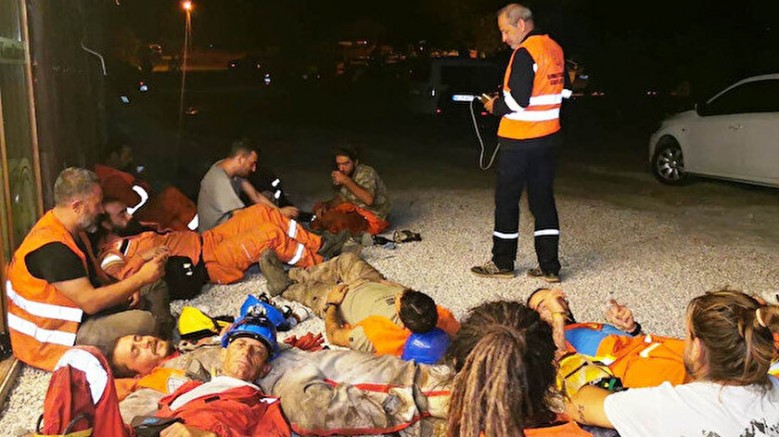 Toprak ve taş zeminde yatarak dinlenen gönüllülerden Sertaç Soğancı ise, Yelken Gönüllüleri olarak alevleri söndürmek için uğraş verdiklerini, ormanı korumak için ellerinden gelen ne varsa yapmaya hazır olduklarını ifade etti.