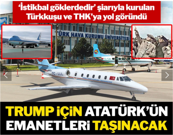 1935 yılında Atatürk tarafından kurulan ve Sabiha Gökçen’in de eğitim alıp pilot olduğu Türkkuşu tesisleri, Trump’ın Air Force One ve yabancı konukların uçağına yer açmak için taşınacak. Eski AKP Milletvekili Zehra Taşkesenlioğlu’nun boşandığı eşi Ünsal Ban’ın yolsuzlukları ile gündeme gelen Türk Hava Kurumu Üniversitesi de Etimesgut’tan Sivrihisar ya da Polatlı’ya gidecek.