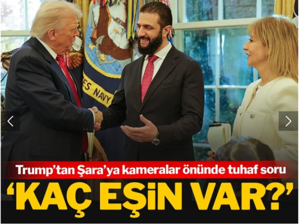 Trump, Şara'ya ilk parfüm şişesini uzatırken "Bu en iyi koku. Al şunu" dedi ve ikincisini göstererek "İkincisi eşin için. Kaç eşin var? Bir mi?" diye sordu. Şara da gülümseyerek "Bir" yanıtını verdi.
