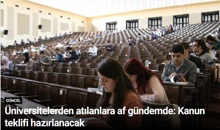 Talimat doğrultusunda Yükseköğretim Kurulu’nda (YÖK) etki analizi çalışması başlatıldı. Çalışmanın tamamlanmasının ardından ortaya çıkacak veriler doğrultusunda, üniversitelerden ilişiği kesilen öğrencilerin yeniden eğitime dönebilmelerine imkan sağlayacak bir kanun teklifinin TBMM gündemine getirilmesi öngörülüyor.