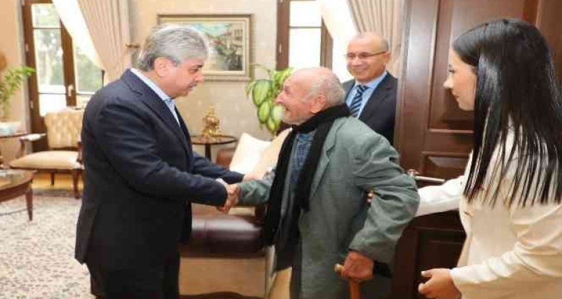 Hatay Valisi Rahmi Doğan, 98 yaşındaki Mehmet Şükrü Vural'ı makamında ağırlarken, "Her zaman büyüklerimizin yanında olmaya devam edeceğiz" dedi.