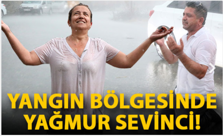 Bölgede yardım çalışmalarına katılan gönüllüler, yağmurun başlamasıyla birlikte sevinç çığlıkları attı. Kalemler Mahallesi'nde bir vatandaş, asfaltta dizlerinin üzerine çöküp yağmur altında dua etti. Aniden çıkan fırtına nedeniyle kurulan çadırlar uçma tehlikesi geçirdi. Gönüllüler, bölgedeki yaşlıları fırtınadan güvenli noktalara taşıdı. Sağanak nedeniyle ilçe merkezindeki cadde ve sokaklar ise göle döndü. Yangının etkilediği ormanlık alanlarda soğutma çalışması yapan orman işçileri ve itfaiye ekipleri de yağmur mutluluğu yaşadı.