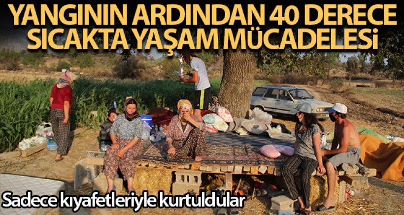 Küçükbaş hayvanları hemen dışarı çıkarıp sürdüklerini anlatan Kılıç, “Etrafı susam ve mısır olan tarlaya doğru hızlı şekilde götürdük. Etrafı yeşillik olduğu için koyunlarımız etkilenmedi. Ateş topunun içinde kaldık. 3 gün biz orada kaldık. Evimiz yandı. Hiçbir şey alamadık. Üzerimizdeki kıyafetle çıktık. Şu an ağacın altına yaptığımız çardakta kalıyoruz. Devletimiz çadır da kurdu sağ olsunlar. Ama biz buraya su ve hayvanlarımıza yem desteği, İki aile olduğumuz için iki konteyner istiyoruz. Allah razı olsun çadırımızı yaptılar ama sıcak sorunu oluyor, bunaltıyor. Kardeşlerim annem ve ailemle serin olduğu için çardakta kalıyoruz” diye konuştu.