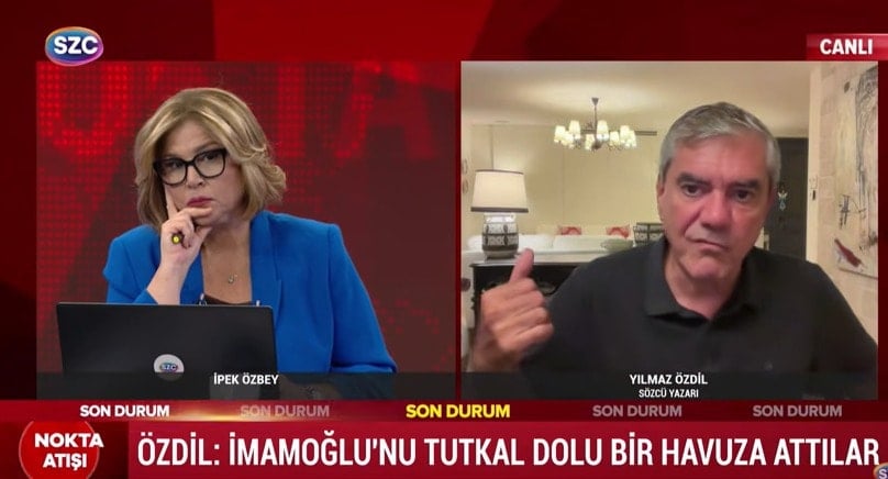 "- Ekrem İmamoğlu'nu tutkal dolu bir havuza attılar. Dört beş yıl önce İstanbul Karaköy'de Kılıç Ali Paşa camisi var. Orada bir evin önünde biri ölü bulundu. Sonra anlaşıldı ki adam Binbaşı. MI6 mensubu İngiliz casusu. MI6 dediğin Askeri İstihbarat. Adam öldü bizim medyamız o zaman fark etti. Ama Hüseyin Gün denen bu adama bakıyorsun her yere bulaştırmışlar. Burada çok büyük bir çuval oluşturuldu. Dolayısıyla ekranda hayatta kalmış ender kurumlardan biri SÖZCÜ TV. Herkesin gazetecilik sorumluluğuyla hukuk çerçevesinde gazetecilik sınırlarını aşmadan iş yapması lazım. Ekrem İmamoğlu'nu tutkal dolu bir havuza attılar yüz dediler."