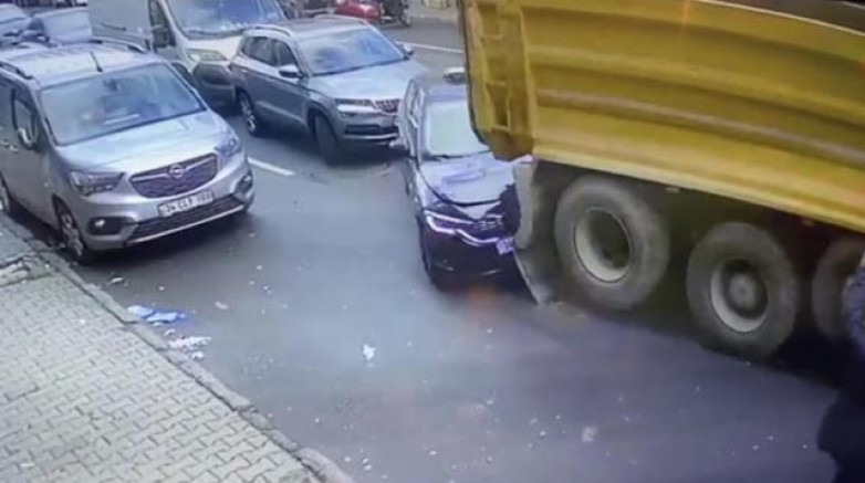 Tamir sürdüğü esnada kamyon bir anda geriye doğru kaymaya başladı. Sürücünün peşinden koştuğu kamyon kayarak önce arkadan gelen Fiat Egea marka 34 DTM 747 plakalı otomobile ardından da park halindeki 3 araca çarparak durabildi. Kaza sonucu kamyon sürücüsü yaralanırken, kullanılamaz hale gelen otomobildeki sürücü ise yara almadan kurtuldu. Kaza anı ise güvenlik kamerasına saniye saniye yansıdı.